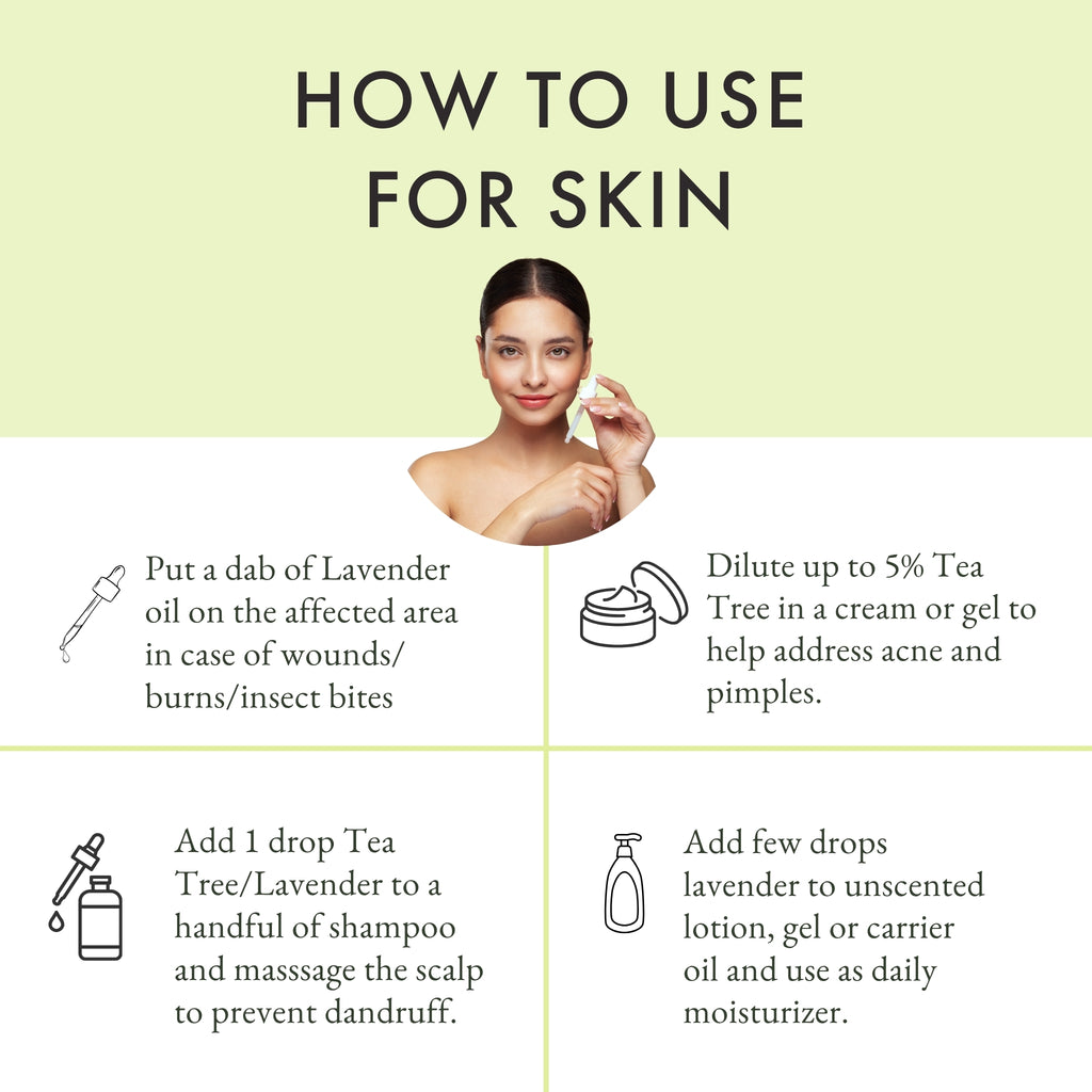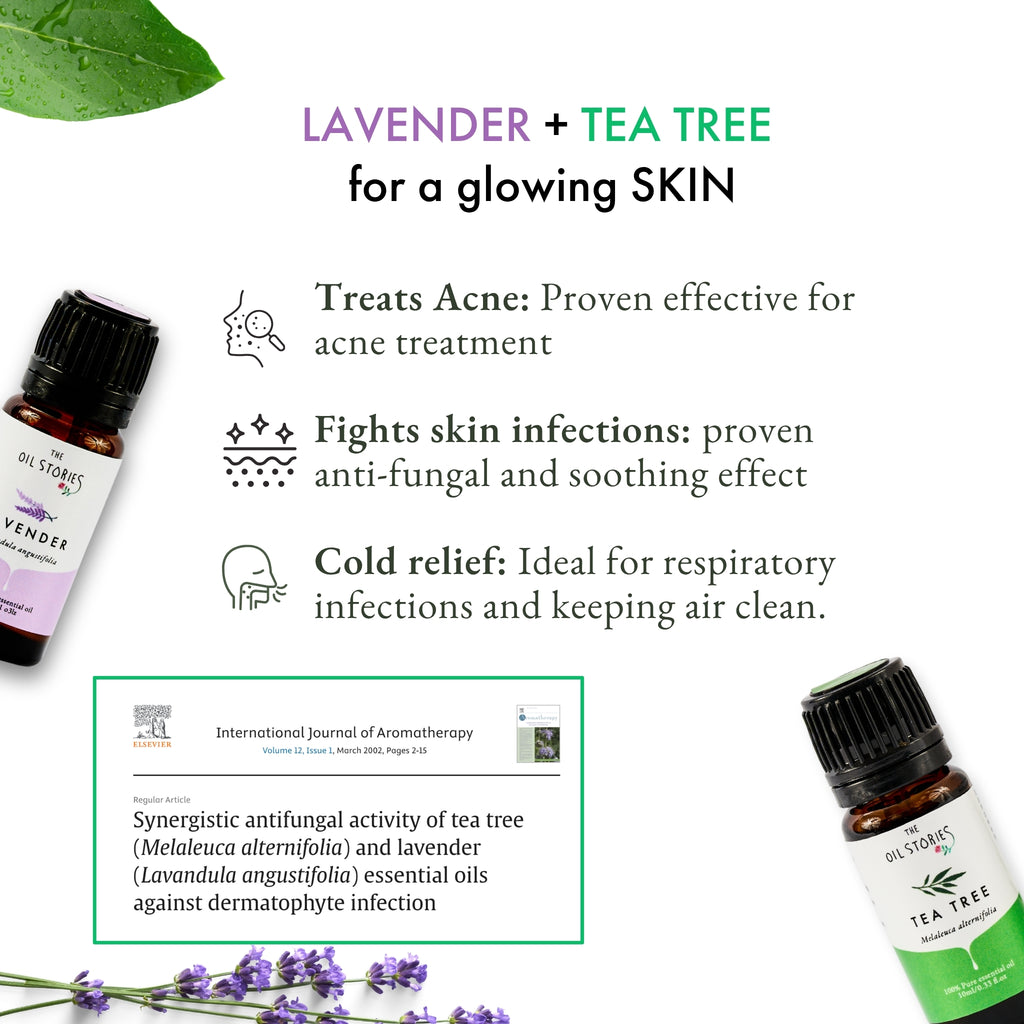 Tea Tree + Lavender (lab tests): Together they fought common skin infections better than either oil alone(Cassella et al., 2002).